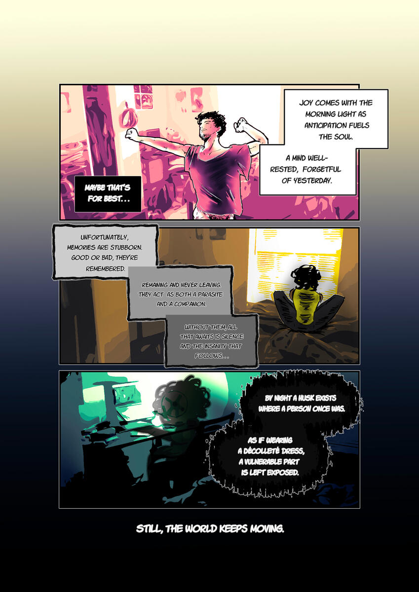 Art speaks where words sometimes fail. I believe that comics, especially manga, provide the perfect space to express emotions and ideas that go beyond language. My work is my way of sharing the raw experiences of life—the crushing weight of trauma, the deep isolation of loneliness, the unexpected joy of friendship, and those lingering thoughts about our existence. Comics let me channel feelings I can’t easily describe into visual stories that invite viewers to connect with my inner world.Working primarily in manga, I blend elements of comedy and drama to create stories that catch people by surprise. For instance, I might follow a character’s moment of profound despair with a quirky scene—like a humorous twist where Death is casually sipping milk—creating a playful contrast that keeps the reader engaged. I strive to break expectations with each panel, hoping that my stories linger in the mind and encourage self-reflection.Ultimately, my art is about connection. I want my comics to serve as a bridge between my personal experiences and the audience’s own emotions, inspiring others to find meaning and comfort in their own lives. My creative practice is a journey of constant discovery, and through my work, I invite viewers to share in that exploration, to laugh, to cry, and to see themselves in the stories I tell.